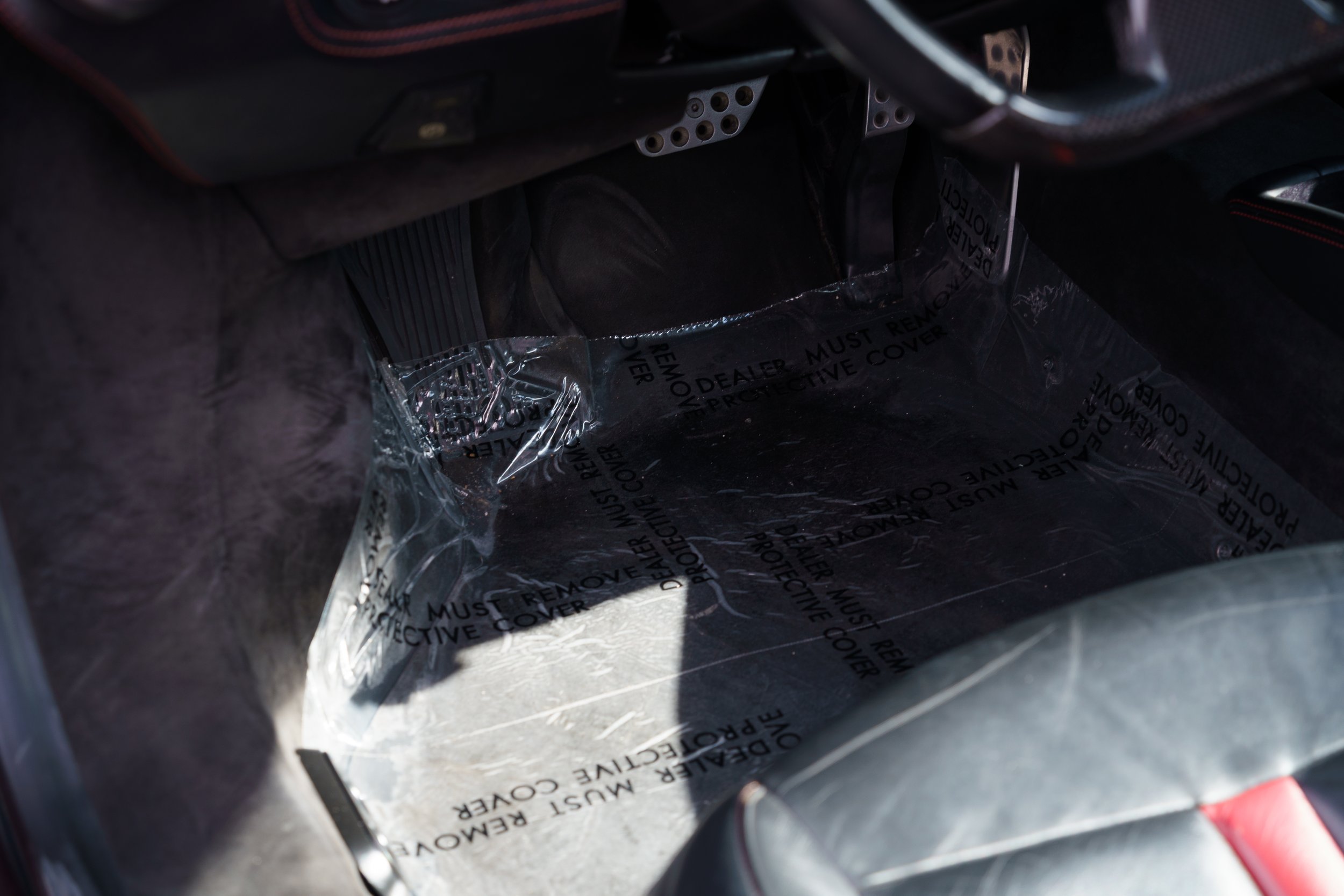 Exterior Enhancements: OEM Carbon Gas Cap, Carbon fiber front splitter (whiskers), carbon fiber fender shields, carbon hood badge, carbon fiber rear diffuser, carbon fiber rear fog light surrounds, black Cavalinos and badges, and a black exhaust surround. Partial front clip PPF (including rockers).